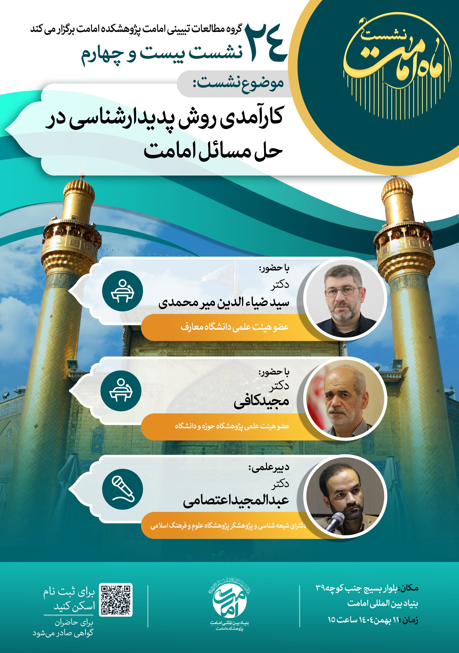 این نشست با هدف واکاوی کاربرد روش پدیدارشناسی به عنوان یکی از روش‌های فلسفی معناشناختی در مطالعه مفهوم امامت و بازخوانی انتقادی مبانی نظری آن برگزار می‌گردد. پدیدارشناسی با تمرکز بر تجربه زیسته و ادراک سوژه، می‌تواند افق‌های جدیدی در فهم مقوله امامت در اندیشه اسلامی بگشاید.