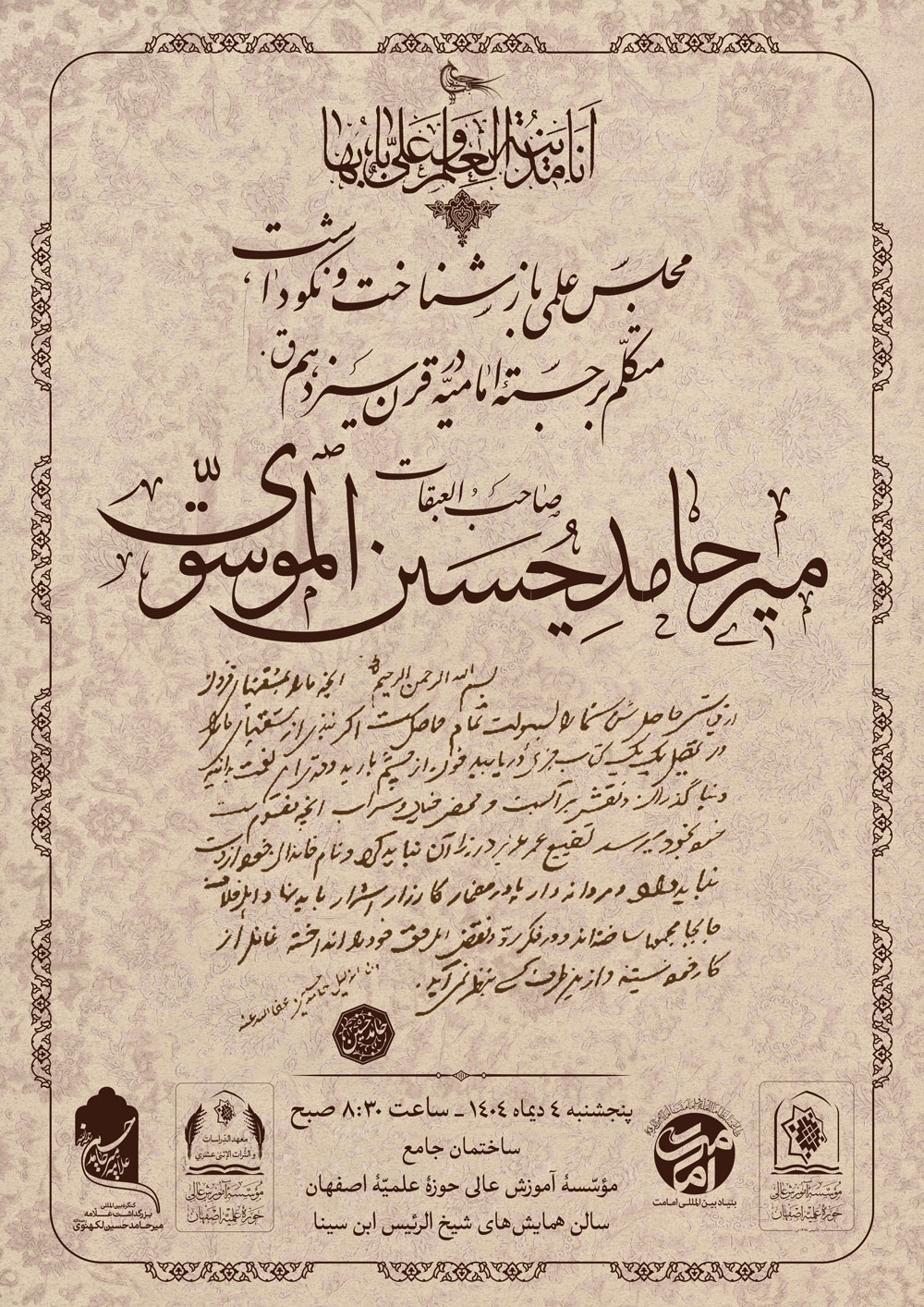 در اصفهان؛ پیش نشست بزرگداشت علامه میرحامد حسین موسوی لکهنوی، متکلم برجسته امامیه قرن سیزدهم، روز پنجشنبه ۴ دیماه ۱۴۰۴ در حوزه علمیه اصفهان برگزار می‌شود.